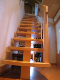 Nicht zuletzt die kunstvolle und solide handwerkliche Ausführung in den verschiedenen einheimischen Holzarten wie z.B. Eiche, Esche, Buche, Kiefer und Tanne führt zum Blickfang und zum gelungenen Aufstieg in Ihrem Haus.